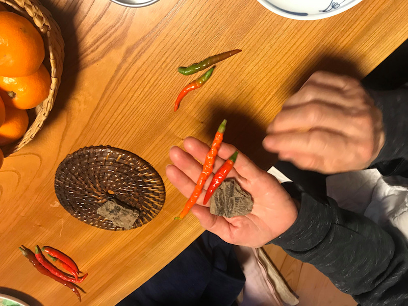そしてお昼は薪ストーブにあたりながらの試食会。