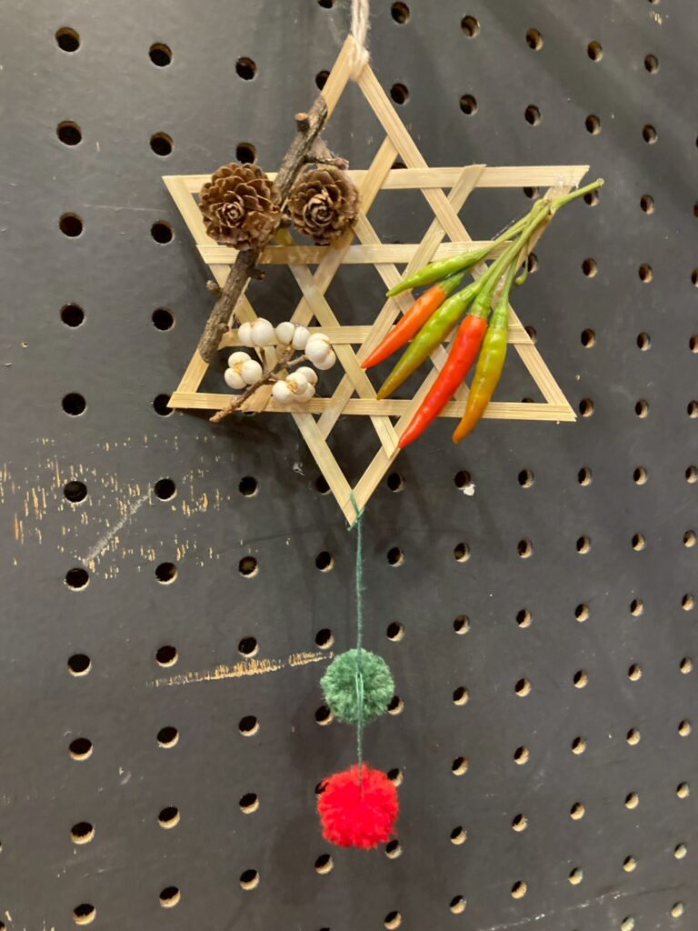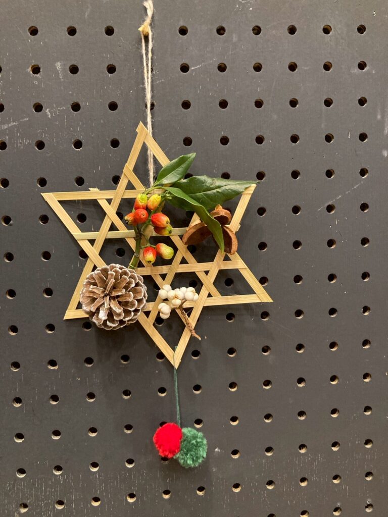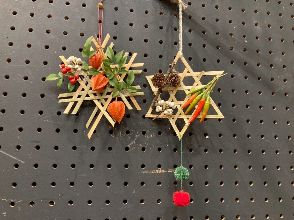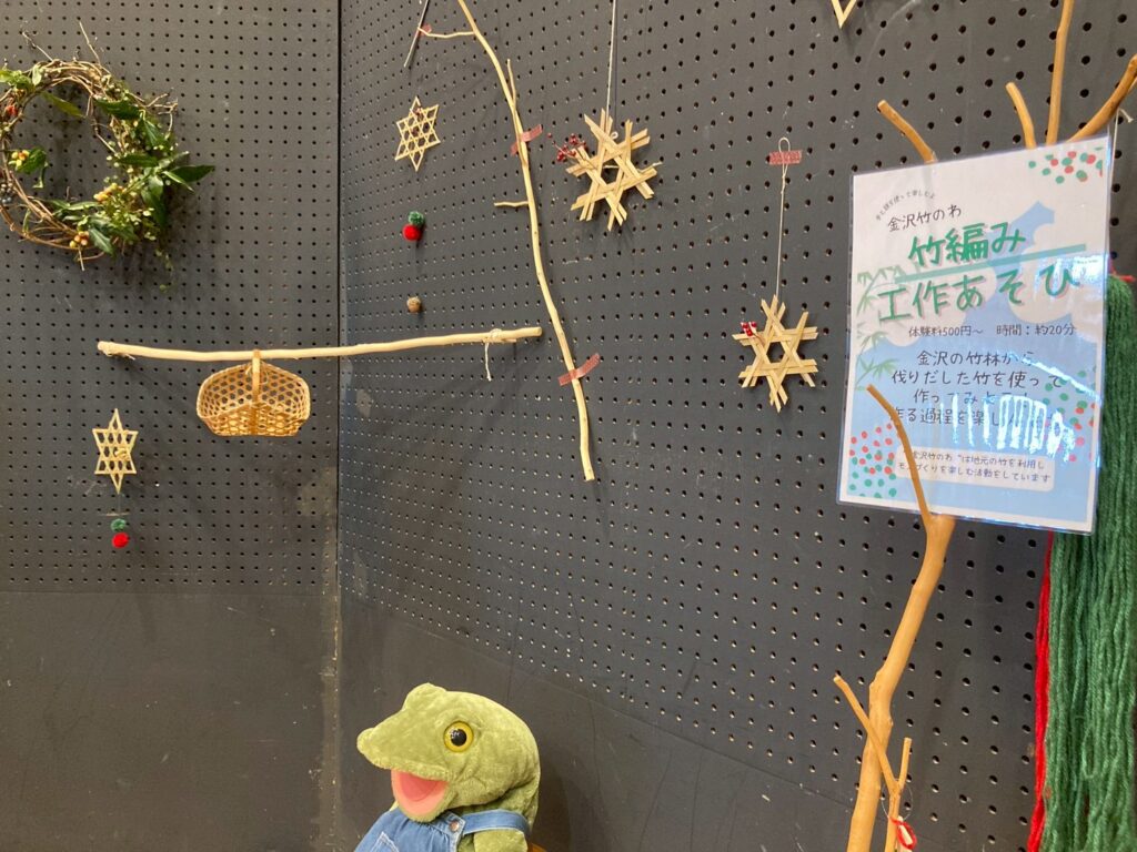 先日(2025/12/13と12/14の二日間)、竹細工の基本「六つ目編み」を編んで、クリスマス用のオーナメントづくりを行いました。スタッフは竹細工の愉快な仲間”金沢竹のわ”のメンバー3人で延べ30名ほどに体験していただきました。