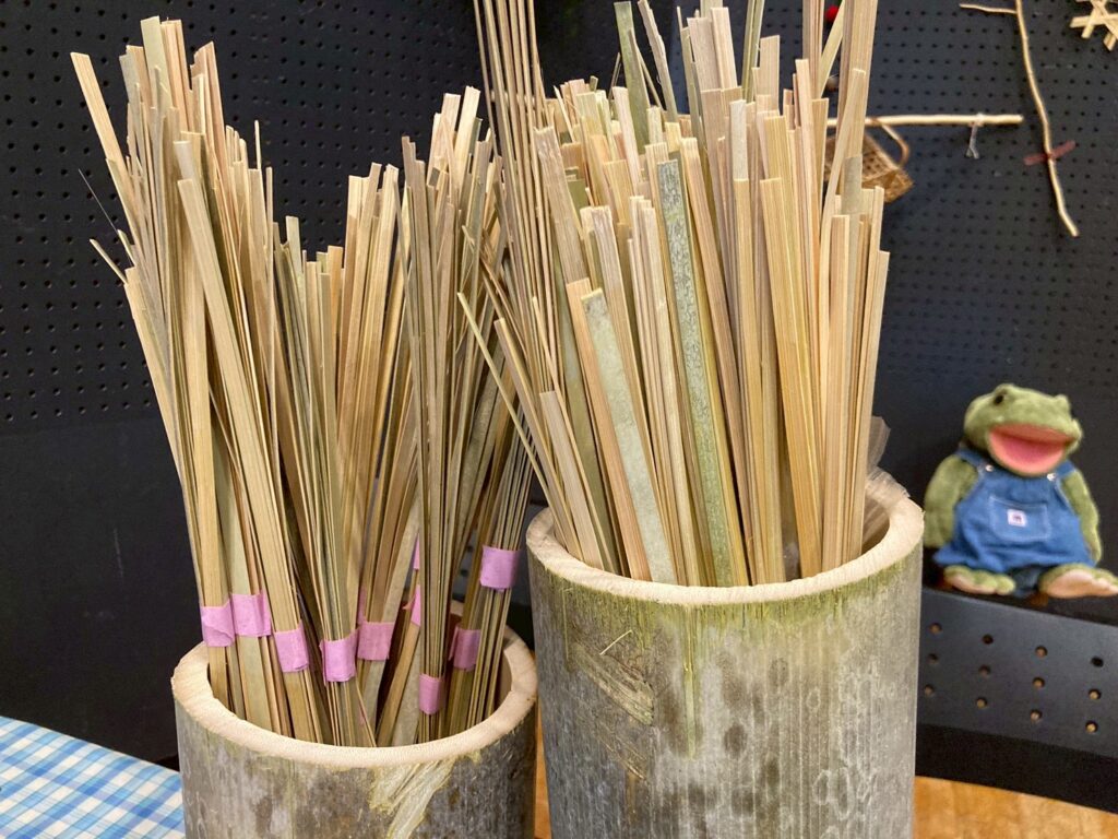 竹ひごはすべて私たち自身で竹を伐りだして竹ひごを作っています。身近にある竹を利用して、楽しんでいます。またやりましょう。